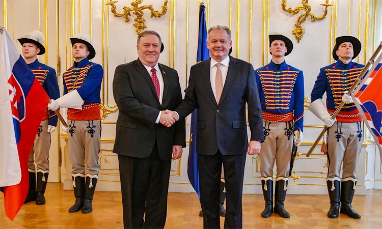 Foto: Andrej Kiska s ministrom zahraničných vecí USA Mikeom Pompeom. Zdroj: Ambasáda USA na Slovensku.