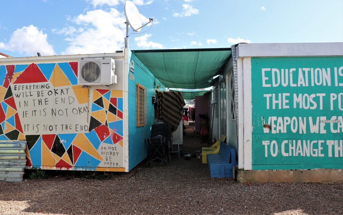 Foto: Motivačné heslá a murály na kontajnérových obydliach: „Nakoniec všetko dobre dopadne. Pokiaľ to ešte nedopadlo dobre, nie je to koniec.“ Zdroj: Autor.