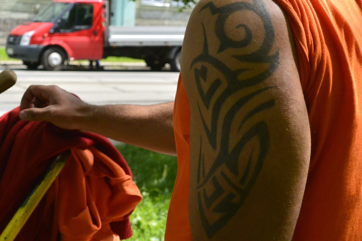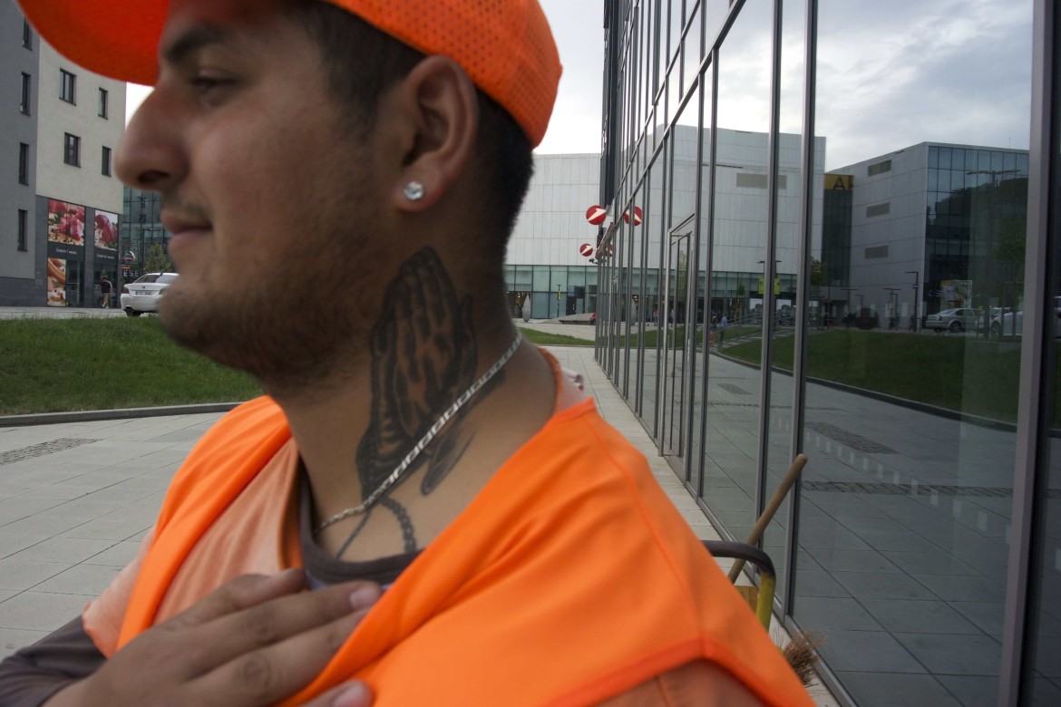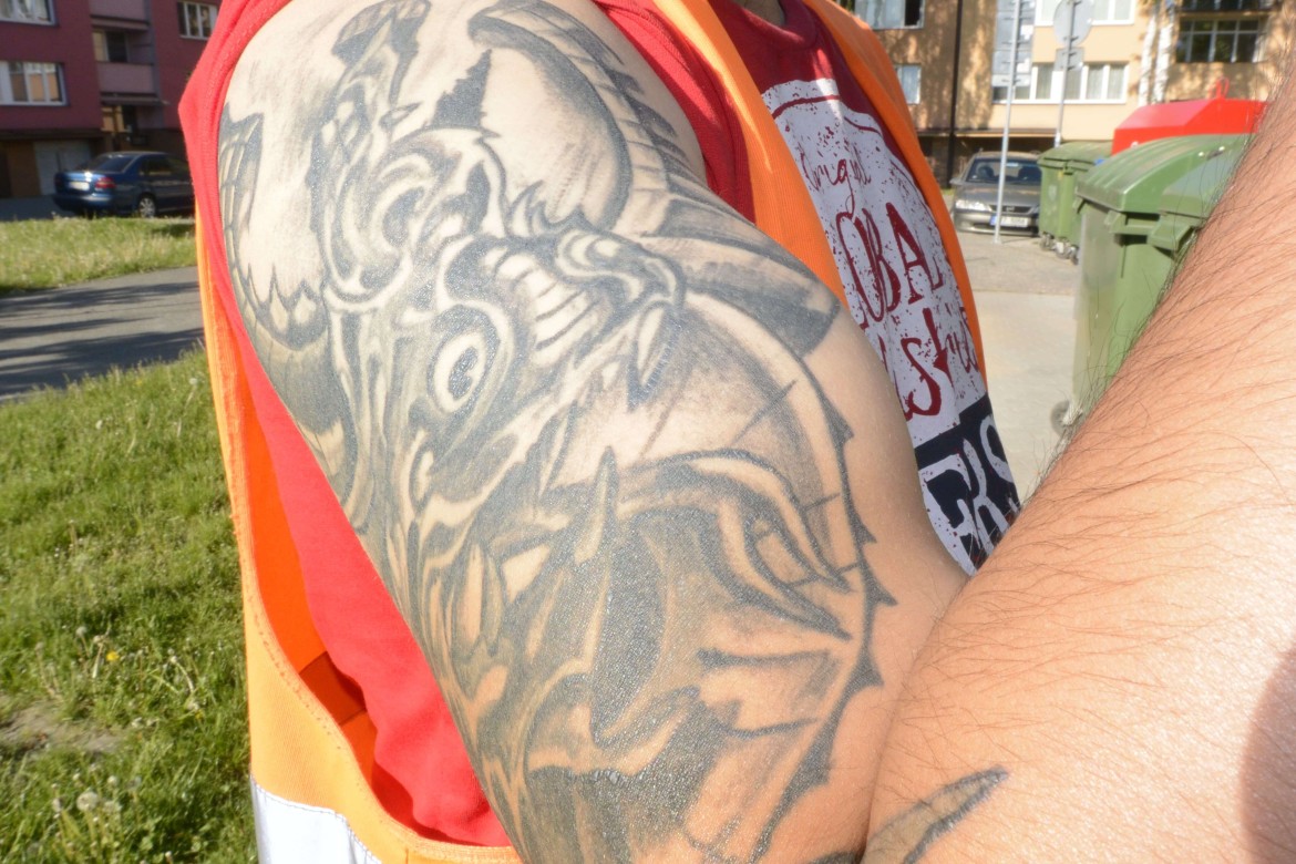 Tetovania som si všimla počas práce v podniku, ktorý sa stará o čistotu mesta. Dva mesiace som vstávala o pol štvrtej ráno (s výnimkou šťastných dní popoludňajšej zmeny) a spolu s kolegyňami a kolegami (mužov bola väčšina) zametala ulice, zbierala psie exkrementy a čistila obrubníky od buriny. Počas tých dní v oranžových montérkach, s lopatou, metlou a motykou v žltom vozíku som spoznala nielen skupinu rázovitých a vtipných ľudí, ale aj – a najmä – paralelné mesto, o ktorého existencii som mala len hmlisté tušenie. To mesto charakterizujú vzťahy: s pravidelnými okoloidúcimi, náhodnými okoloidúcimi (delia sa na tých, čo vás chvália, sťažovateľov a humanistov, ktorí vás ľutujú), predavačkami či majiteľkami obchodíkov a prevádzkovateľmi vietnamských reštaurácií, s postavičkami ako pani J., bezdomovkyňa, ktorá záhadne otehotnela, alebo páni M. a B., ktorí popoludní pijú spravidla na tom istom mieste na kraji centra a vzťahy s ďalšími robotníkmi. Charakterizujú ho aj miesta: kontajnery, kam sa chodia vysýpať vozíky, bufety, kam chodíme na svačinu, obzvlášť špinavé lokality ako napríklad Stodolní v sobotu ráno, a rôzne dvory, na ktoré neradno zabudnúť, lebo sa obyvatelia okolitých domov budú sťažovať.