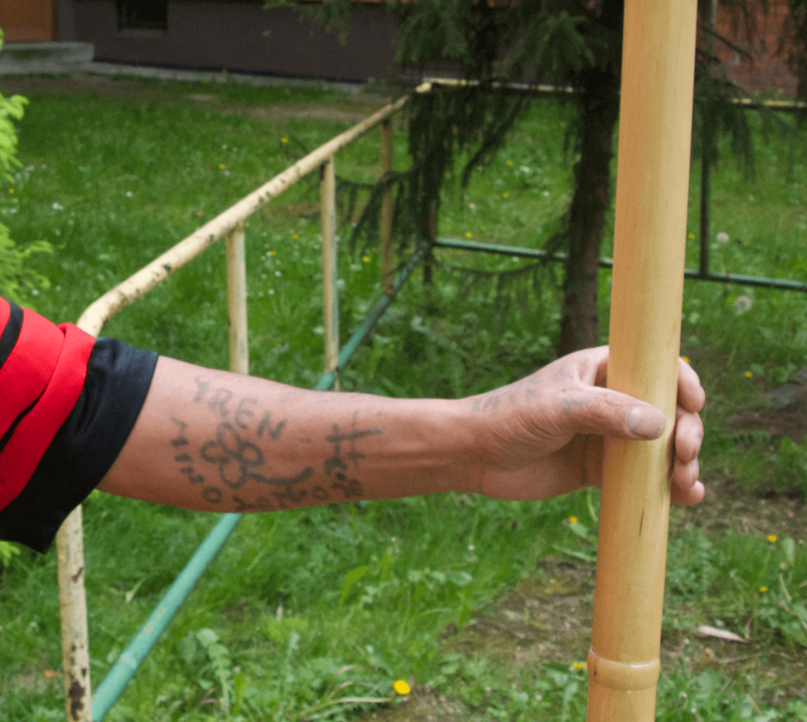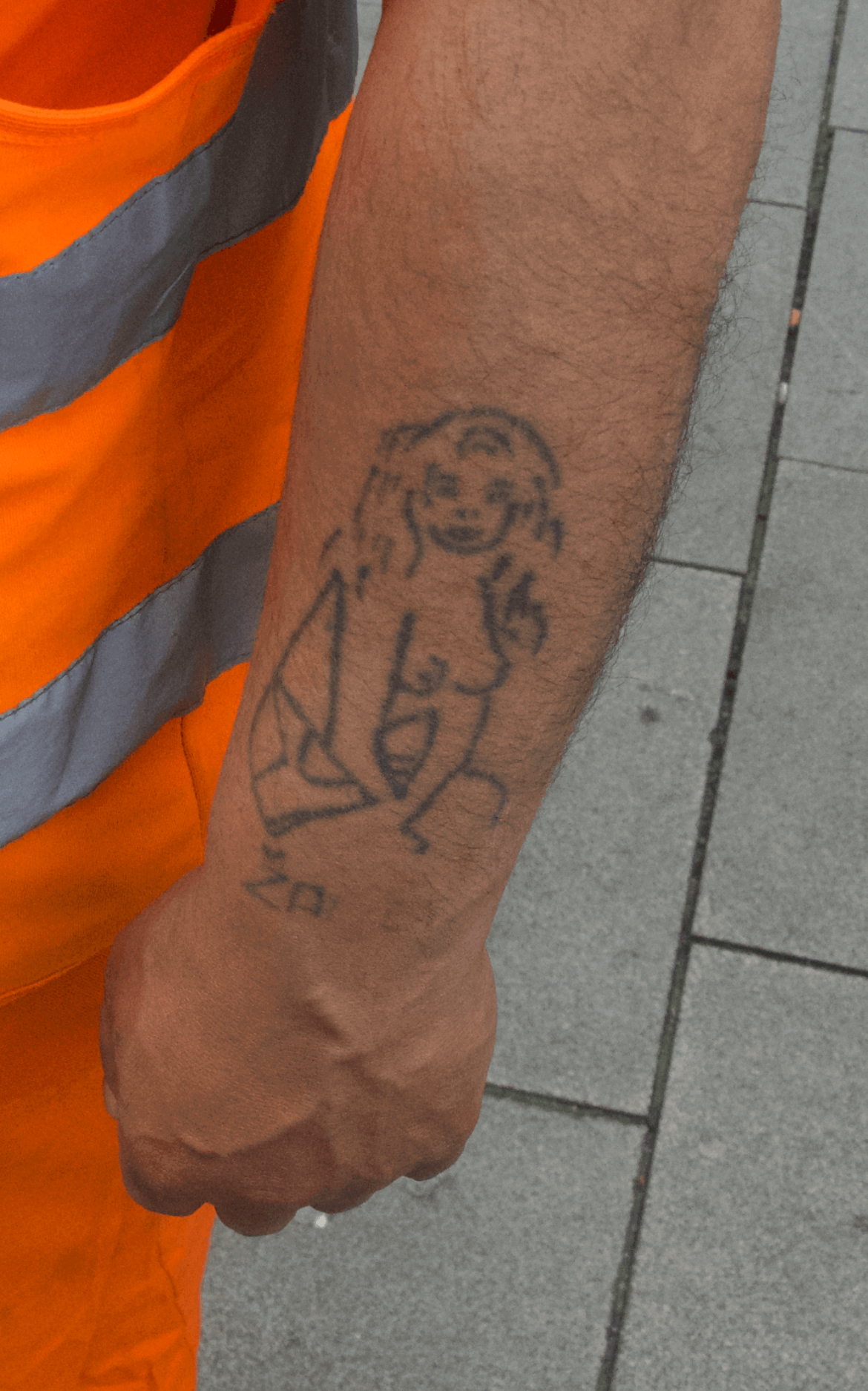 V prvej časti série fotografií som zaznamenala tetovania mojich kolegov. Líšia sa najmä podľa veku: kým starší, štyridsiatnici a päťdesiatnici, majú tetovania svojpomocne urobené ihlami a atramentom, dvadsiatnici sa zdobia kerkami, ktoré im urobili ich známi za “kamarátsku cenu” v štúdiu. Väčšina je o láske: láske bývalej, avšak permanentne uchovanej na ruke, láske prvej a bolestivých pokusoch o jej získanie pomocou doma vyvarenej ihly vpisujúcej do tela iniciály, meno alebo dátum narodenia.