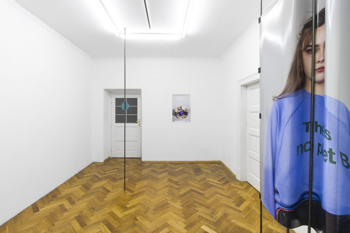 Foto: Leontína Berková. My thoughts Have Been Replaced by Beyoncé’s Lyrics. Inštalácia insitu, rôzne média a dimenzie. 2019, Phoinix, Bratislava (pohľad do výstavy), foto Leontína Berková